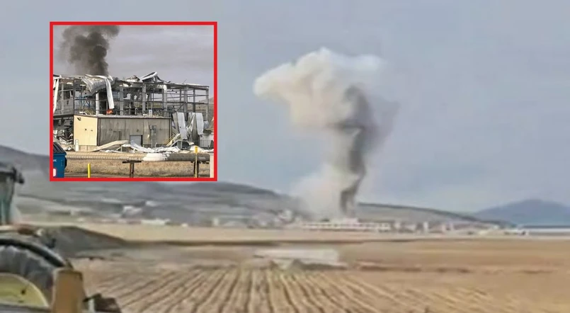 W nagraniach, wykonanych zaraz po niej i zamieszczonych w sieci, widać, jak na fabrycznym kompleksem wznosi się słup dymu.