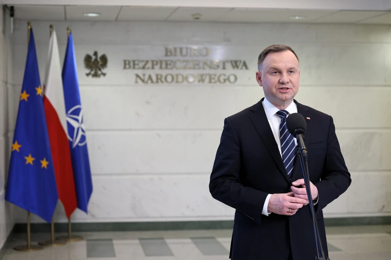 Prezydent Duda mówił na briefingu prasowym po naradzie, że to, co obserwujemy od wczesnych godzin porannych na Ukrainie to "bezprecedensowy akt naruszenia prawa międzynarodowego i gwałtu na suwerennym i niepodległym państwie".