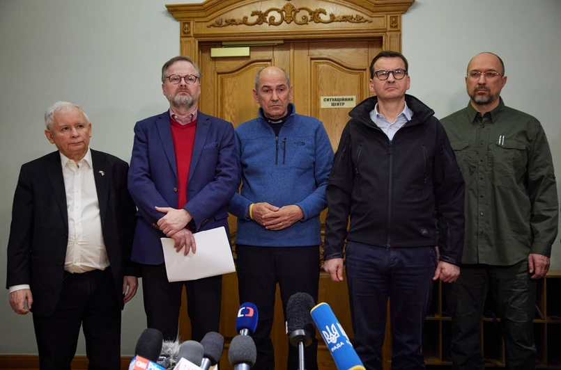 Prezydent Zełenski, a także premier Ukrainy Denys Szmyhal spotkali się we wtorek z przebywającymi w Kijowie: premierem Mateuszem Morawieckim, wicepremierem Jarosławem Kaczyński oraz premierami Czech: Petrem Fialą i Słowenii Janezen Janszą.