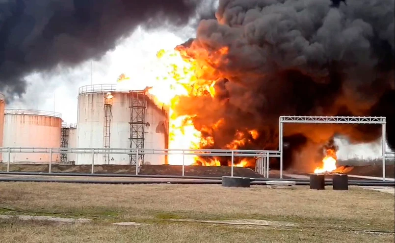 "Pożar zniszczył kilka zbiorników paliwa w magazynie w rosyjskim mieście Biełgorod w pobliżu granicy z Ukrainą. Dostawy dla rosyjskich sił okrążających Charków (60 km od Biełgorodu) mogą być szczególnie nadwyrężone” – napisało na Twitterze brytyjskie ministerstwo obrony.