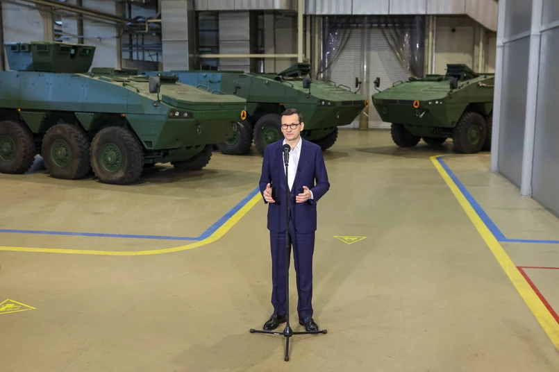 "I dzisiaj tutaj z Siemianowic Śląskich mogę powiedzieć, że otrzymujemy kolejne zamówienie, przywożę zamówienie, które wczoraj dostałem od premiera Ukrainy Denysa Szmyhala, na 100 rosomaków, które będą tutaj produkowane" – poinformował premier.