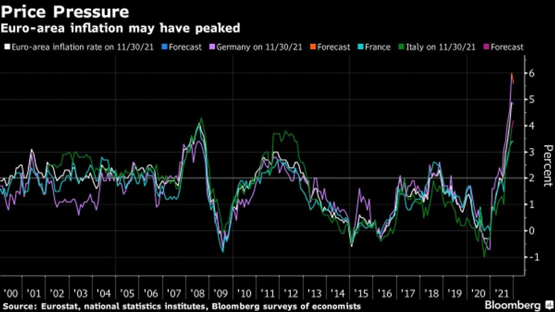 Raport o francuskich cenach konsumenckich w grudniu pokazuje pierwsze oznaki stabilizacji. EBC spodziewa się, że presja wzrostowa osłabnie w 2022 roku, powiedział szef francuskiego banku centralnego w noworocznym przemówieniu opublikowanym na stronie internetowej tej instytucji.