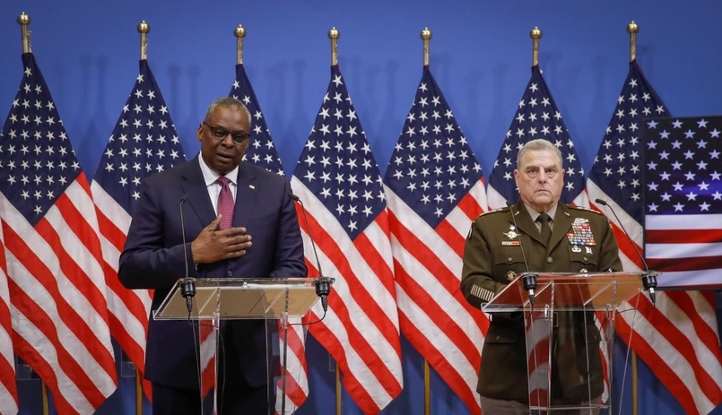 Austin i przewodniczący Kolegium Połączonych Szefów Sztabów generał Mark Milley wystąpili na konferencji prasowej po zorganizowanym przez USA spotkaniu Grupy Kontaktowej ds. Obrony Ukrainy z udziałem ministrów obrony prawie 50 państw.