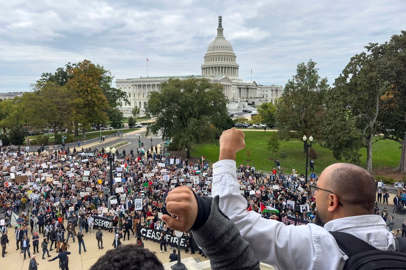 Jak informuje “Washington Post” do aresztowań doszło po tym, jak demonstranci, zaniepokojeni sytuacją Palestyńczyków w Gazie, zebrali się przed gmachem Kongresu. Protestujący trzymali transparent z czerwonym napisem “Nasza krew jest tego samego koloru”, powiewali palestyńskimi flagami i nieśli plakaty z napisami “Mój smutek nie jest waszą bronią”.