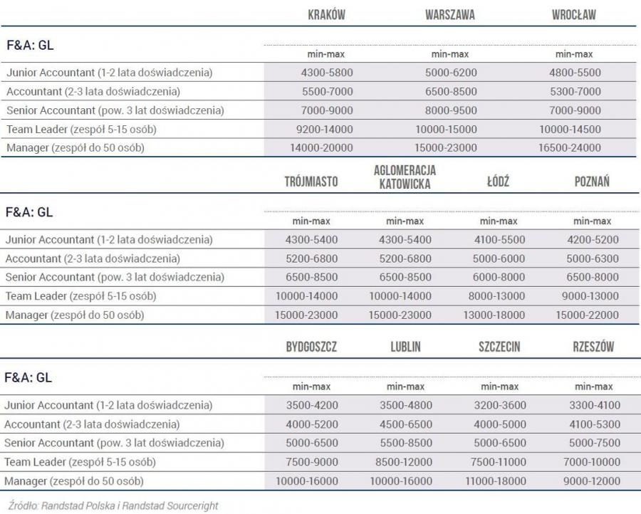 Dane o wynagrodzeniach pochodzą z raportu przygotowanego przez Związek Liderów Sektora Usług Biznesowych (ABSL) we współpracy z: JLL, Randstad Polska i Randstad Sourceright, EY, Everest Group. Raport został zaprezentowany w czasie corocznego kongresu ABSL, którego głównym partnerem medialnym jest DGP. Bankowość (Banking) Serwis klienta (Customer Service) Zarządzanie zamówieniami (Procurement / Order Management) Zasoby ludzkie (HR processes) IT