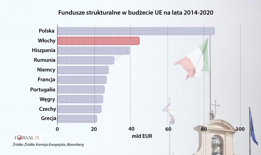 Niedawno felietonista niemieckiego Der Spiegel napisał, że Włosi są agresywnymi darmozjadami i że żebracy przynajmniej mówią dziękuję. Ostre słowa. Ale populistyczni przywódcy Włoch mają twarde dane na poparcie swojego niezadowolenia z UE. Jakie? Te pięć wykresów wiele wyjaśni. Fundusze strukturalne per capita w budżecie UE na lata 2014-2020 I tak po uwzględnieniu populacji państw członkowskich sytuacja Włoch jest znacznie gorsza. Okazuje się, że w przeliczeniu na jednego mieszkańca Włosi