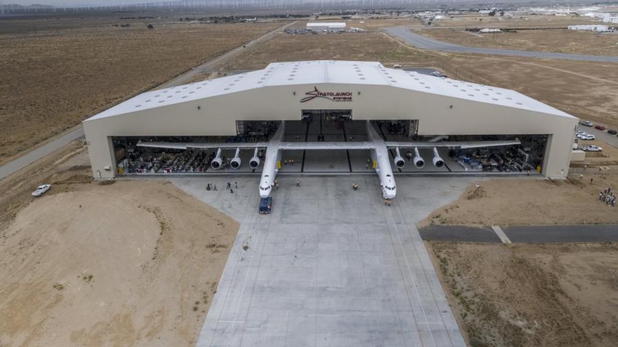 Stratolaunch - Największy samolot świata Konstrukcja tego kolosa składa się z dwóch połączonych ze sobą kadłubów. Stratolaunch napędzany jest przez sześć silników odrzutowych, takich jakie montowane są w pasażerskich samolotach Boeing 747 - Jumbo Jet. <br><br>fot. EPA/STRATOLAUNCH SYSTEMS CORP. STRATOLAUNCH SYSTEMS CORP. HANDOUT PAP/EPA Na ziemi konstrukcja opiera się na 28 kołach. W locie siłę nośną tworzą skrzydła o niespotykanej dotąd rozpiętości 117 m. <br><br&