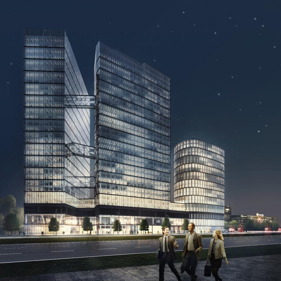 Budowa największego projektu Ghelamco Poland – zespołu wieżowców The Warsaw HUB na warszawskiej Woli – nabiera tempa i rozmachu. Obecnie trwają prace nad podziemną częścią kompleksu. Kompleks będzie się składał z trzech wysokościowców: 85-metrowego budynku hotelowego oraz dwóch 130-metrowych wież biurowych. Wszystkie te obiekty połączy wspólna pięciokondygnacyjna podstawa, która stworzy wielkomiejską pierzeję ulicy Towarowej. <br><br>The Warsaw HUB - wizualizacja. Źródło: Ghelamco