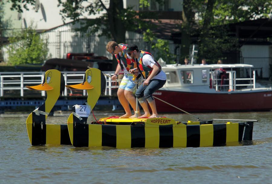 Kilkadziesiąt prototypowych jednostek pływających, napędzanych pracą ludzkich mięśni, uczestniczy w międzynarodowych regatach rozgrywanych od czwartku na jeziorze Jeziorak w Iławie. W skład załóg wchodzą studenci uczelni technicznych z niemal całej Europy. Wszystkie startujące w regatach jednostki wodne są napędzane pracą ludzkich mięśni. W czwartek rozgrywane są pierwsze wyścigi kwalifikacyjne, finały zaplanowano na sobotę. <br><br>mbo/ zan/<br>fot. (sj) PAP/Tomasz Waszczuk