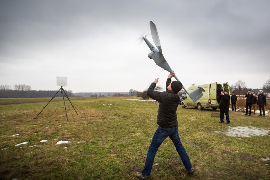 W 2014 r. wartość towarów skradzionych z PKP Cargo zmniejszyła się o 3,5 mln zł. Dzięki powietrznym szpiegom. Z danych przewoźnika wynika, że w porównaniu z 2013 r. straty wynikające z kradzieży spadły o 32 proc. PKP Cargo nie uwzględnia przy tym kosztów związanych z przestojami pociągów, wzywaniem na miejsce nowych drużyn trakcyjnych, naprawami uszkodzonych wagonów itd. <br> Na zdj. Dron tuż przed startem www.matuszynski.pl Media Towarowemu gigantowi z rocznymi przychodami prawie 4,3