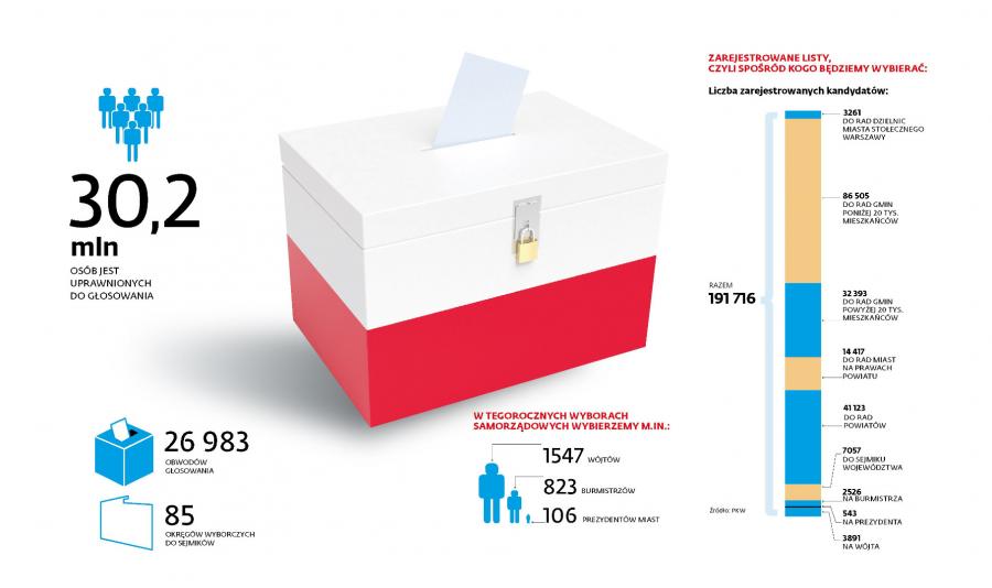 Na kilka dni przed I turą wyborów samorządowych sprawdzamy, jak wyglądają lokalne sceny polityczne w poszczególnych miastach oraz w sejmikach. Warszawa <b>Główne osie sporu:</b><br> * Komunikacja miejska. W szczególności dokończenie drugiej linii metra i rozpoczęcie budowy kolejnych, dopięcie ringu warszawskiego (obwodnicy)<br> * Reprywatyzacja <br> * Dostęp miasta do funduszy budżetowych i unijnych (kwestia relacji prezydenta stolicy z przyszłym rządem)