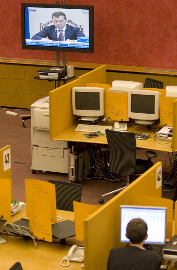 W ciągu tego tygodnia moskiewskie indeksy spadły poniżej psychologicznej bariery. Indeks RTS stracił 21 proc., a MICEX - o 14 proc. Od maja, gdy były na rekordowych wyżynach, oba wskaźniki straciły już ok. 70 proc. W piątek indeks RTS stracił 6,48 proc. i zjechał poniżej 700 pkt - do 667,62 pkt. Natomiast wskaźnik MICEX obsunął się o 4,34 proc. - do 599,64 pkt., czyli poniżej granicy 600 pkt. Chociaż początek dnia nie zwiastował takiego rozwoju wydarzeń. Po pierwszych 20 minutach indeks RTS zyskiwał