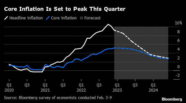 Ścieżka stóp procentowych EBC sugeruje podwyżki na dwóch kolejnych posiedzeniach Projekcje dają wgląd w to, jak mogą wyglądać nowe kwartalne prognozy EBC, gdy pojawią się w przyszłym miesiącu po niedawnym spadku cen gazu ziemnego spowodowanym warunkami pogodowymi. Ostatni zestaw, w grudniu, miał inflację bazową na poziomie 2,4 proc. w 2025 r., co skłoniło EBC do kontynuowania najbardziej agresywnego okresu podwyżek stóp procentowych w historii. Nadal oczekuje się, że EBC podniesie główną stopę procentową