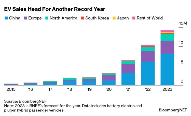 Nowi producenci samochodów zdobywają coraz większy udział w rynku Spowolnienie może jeszcze nadejść, ale na razie obserwujemy raczej rynkową walkę o konkurencyjność, niż ogólny spadek popytu. Producenci, którzy produkują wyłącznie pojazdy elektryczne, tacy jak Tesla, BYD i Li Auto, przejmą w tym roku 7 proc. światowego rynku EV, w porównaniu z zaledwie 1 proc. w 2020 r. Wielu starych producentów samochodów wprowadziło na rynek pojazdy, które nie są konkurencyjne cenowo, zasięgowo lub pod względem