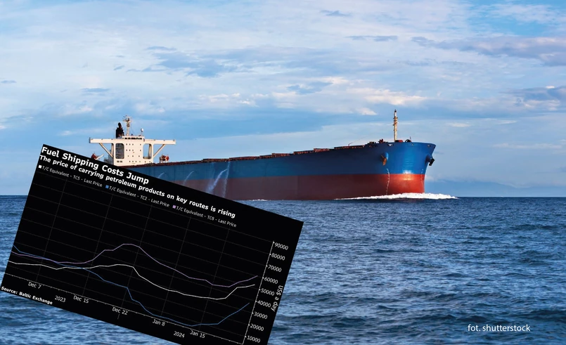 Według szacunków analityków Clarksons Securities, między innymi przez wydłużenie tras, wykorzystanie floty tankowców wzrosło o 2,5 pkt proc. w stosunku do średniej w czwartym kwartale 2023 roku.