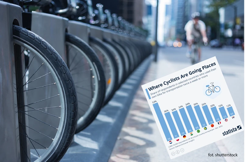 Wśród krajów wybranych do wykresu statista.com, Niemcy, Polska, Indie i Brazylia również wyróżniają się pod względem zamiłowania do jazdy na rowerze jako środka transportu. W tych krajach odsetek osób, które jeżdżą do pracy rowerem dwa lub więcej dni w tygodniu, wahał się od 34 do 36 proc.