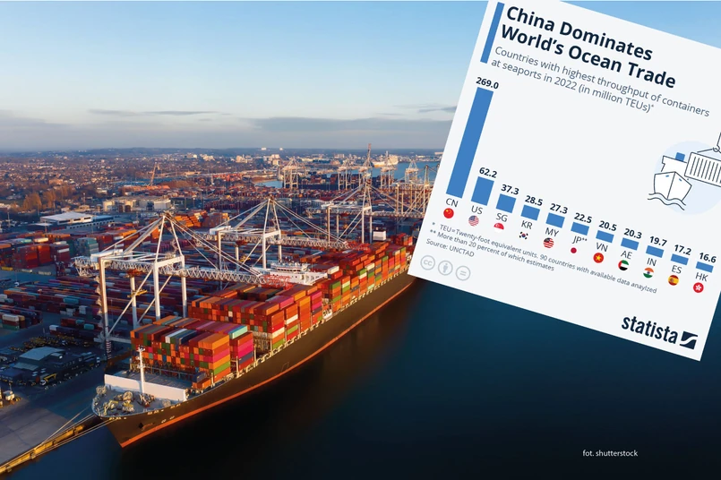 Dane UNCTAD pokazują, że w 2022 r. największą na świecie przepustowość kontenerów odnotowano w Chinach. W portach Państwa Środka przeładowano 269 mln dwudziestostopowych jednostek kontenerowych (TEU). Żaden inny kraj nawet nie zbliżył się do tych wolumenów. Dominacja Państwa Środka w handlu morskim jest w dużej mierze zasługą jego kwitnącego biznesu eksportu elektroniki, mody i innych dóbr konsumpcyjnych.