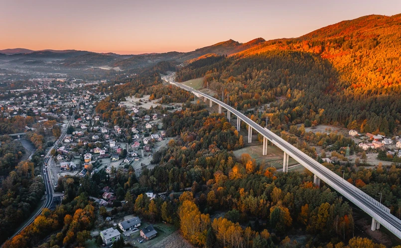 Dzięki estakadom i mostom droga harmonijnie wkomponowuje się w krajobraz, a kierowcy mogą podziwiać widoki Beskidu Żywieckiego, podróżując jedną z najbardziej malowniczych tras w Polsce i tej części Europy.