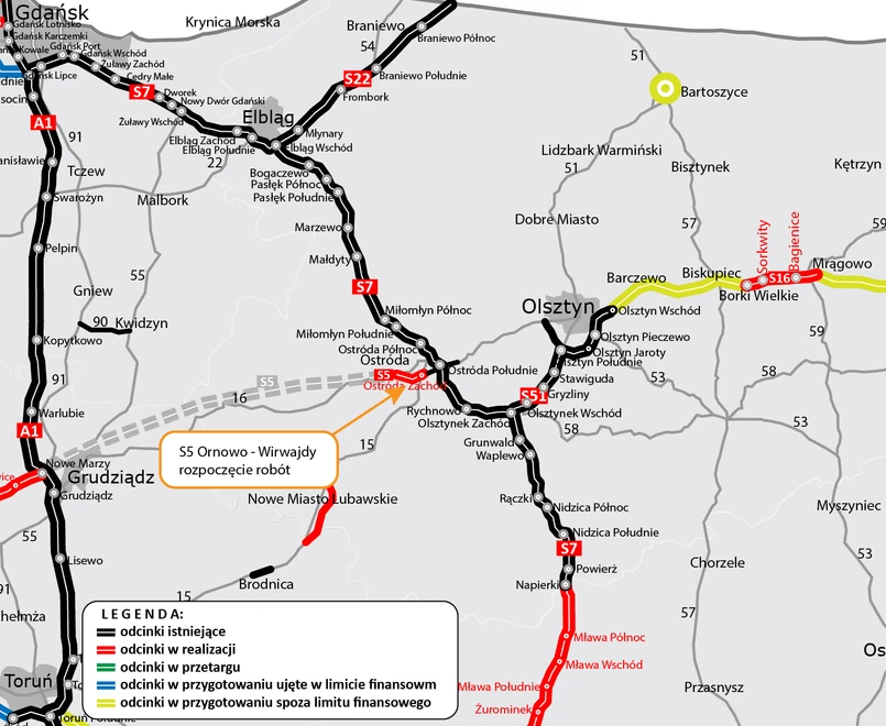 Budowa odcinka drogi ekspresowej S5 Ornowo - Wirwajdy jest kontynuacją obwodnicy Ostródy w ciągu drogi krajowej nr 16, która docelowo stanie się częścią drogi ekspresowej S5 na odcinku Grudziądz (A1) - Ostróda (S7). Stanowić będzie element ciągu dróg ekspresowych w północnej Polsce na linii wschód - zachód, na który złożą się: S10 Szczecin - Piła - Bydgoszcz, S5 Bydgoszcz - Grudziądz - Ostróda, S7 Ostróda - Olsztynek, S51 Olsztynek - Olsztyn, S16 Olsztyn - Ełk oraz S61 Ełk - Budzisko. (PAP)