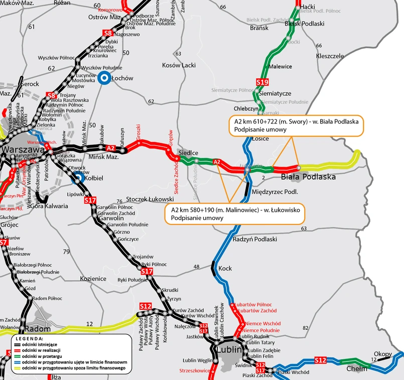 Minister Adamczyk podkreślił, że rusza obecnie realizacja odcinka autostrady A2 między Siedlcami a Białą Podlaską. "Podpisujemy umowę na dwa odcinki, projekt i wykonanie. Do 2024 r. zbudujemy autostradę do Białej Podlaskiej i to jest bardzo dobry komunikat dla mieszkańców Podlasia, ale szczególnie dla wszystkich tych, którzy udają się w kierunku (...) wschodniej granicy państwa, wszystkich tych, którzy mają nadzieję na bezpieczne polskie drogi" - powiedział polityk.