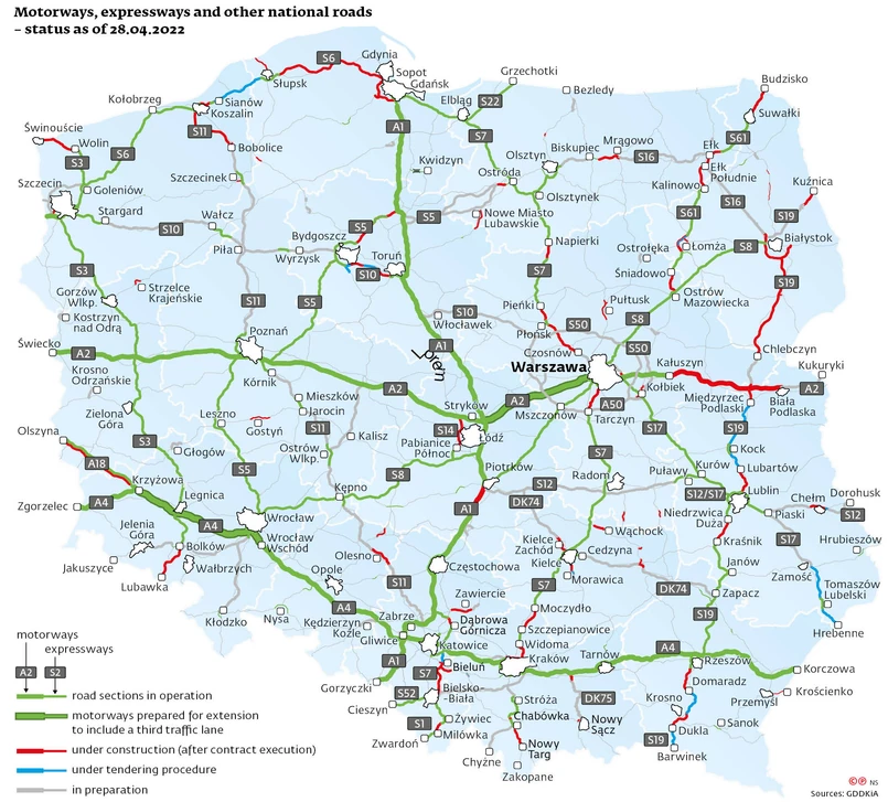 Motorways, expressways and other national roads – status as of 28.04.2022