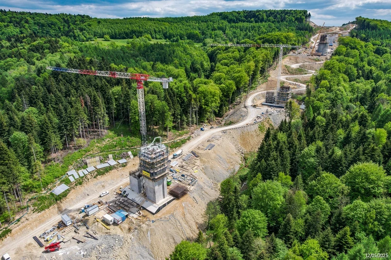Estakada ES-26 wysoka jak wyższa wieża Bazyliki Mariackiej w Krakowie