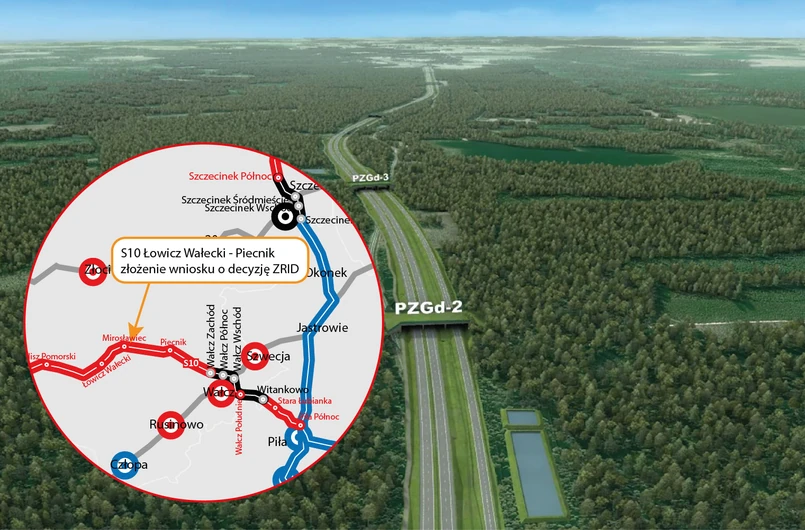 Odcinek Łowicz Wałecki – Piecnik, który będzie stanowił też obwodnicę Mirosławca, omijając to miasto od północy, to już szósty fragment S10 w zachodniopomorskim z wnioskiem o tę decyzję. Umowę o wartości 538 mln zł GDDKiA podpisała pod koniec października ubiegłego roku z firmą Budimex.